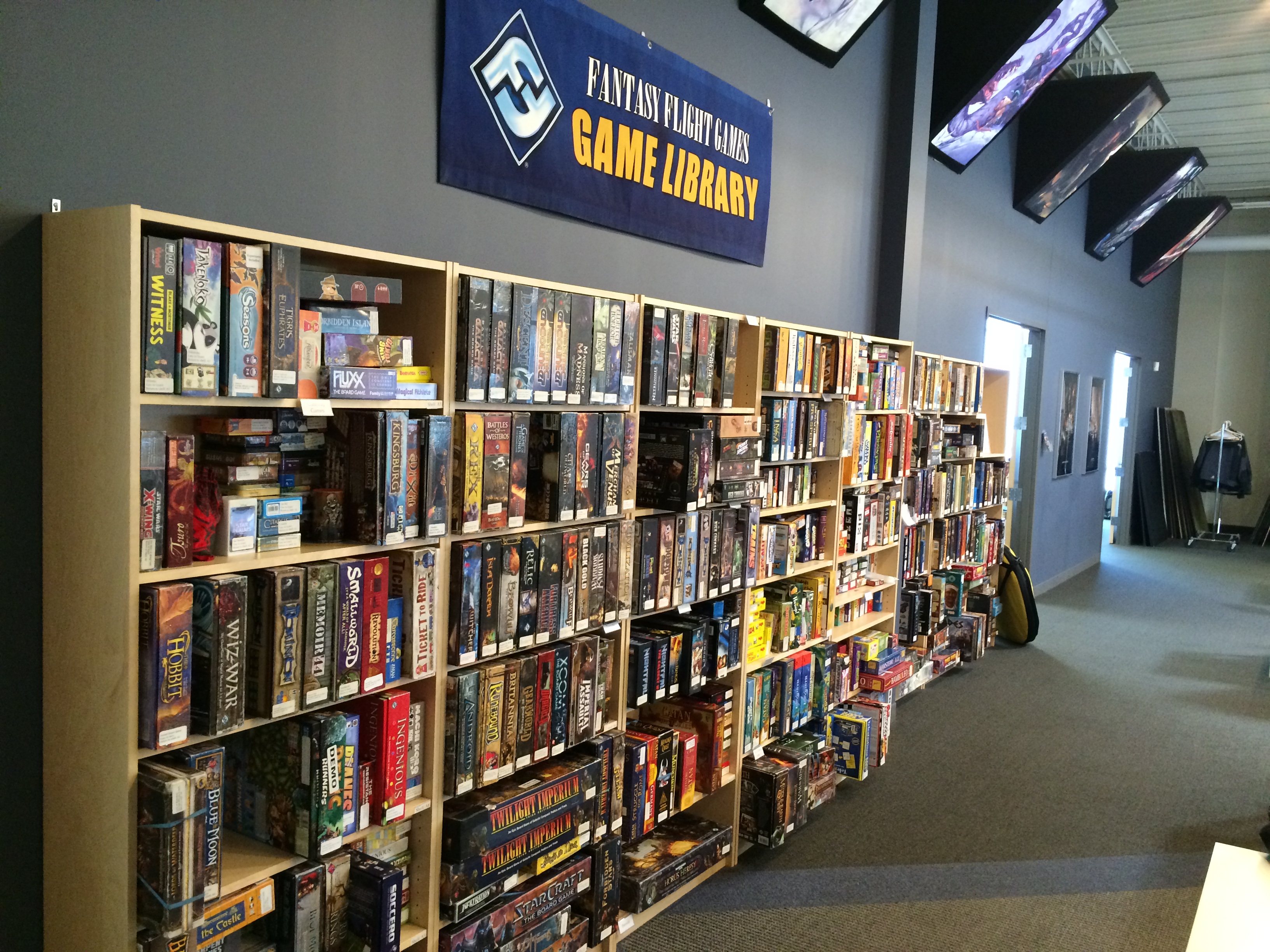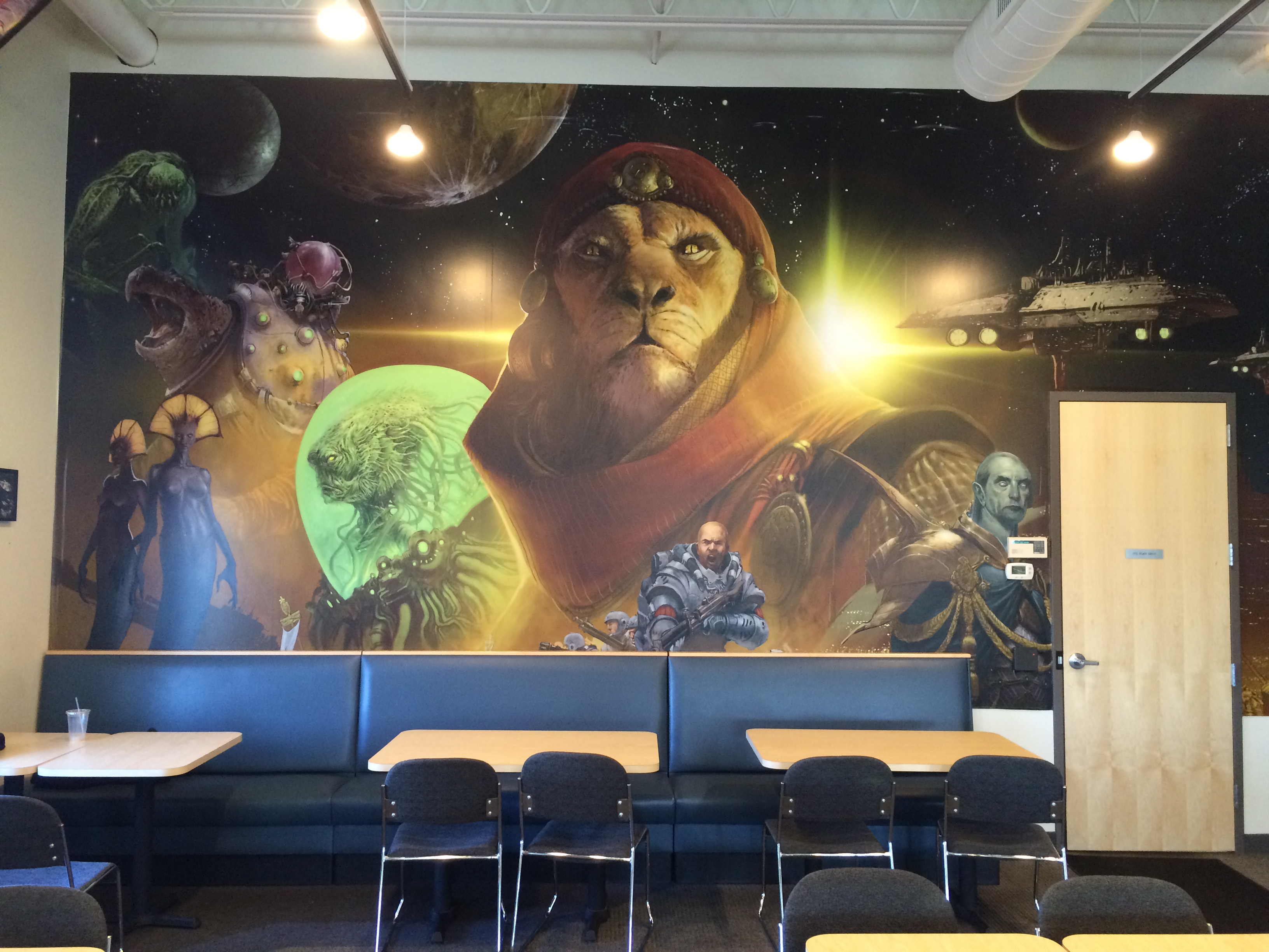 The Fantasy Flight Games Center is a very clean and amazingly minimalistic place. The only thing on the walls is art from their games, Star Wars and non.
