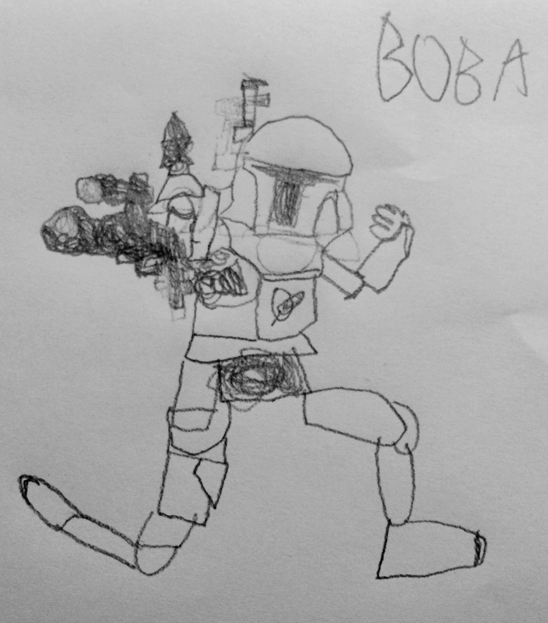 Liam’s art continues to get more and more impressive. Here’s a Boba Fett drawing based on the Disney Infinities model: